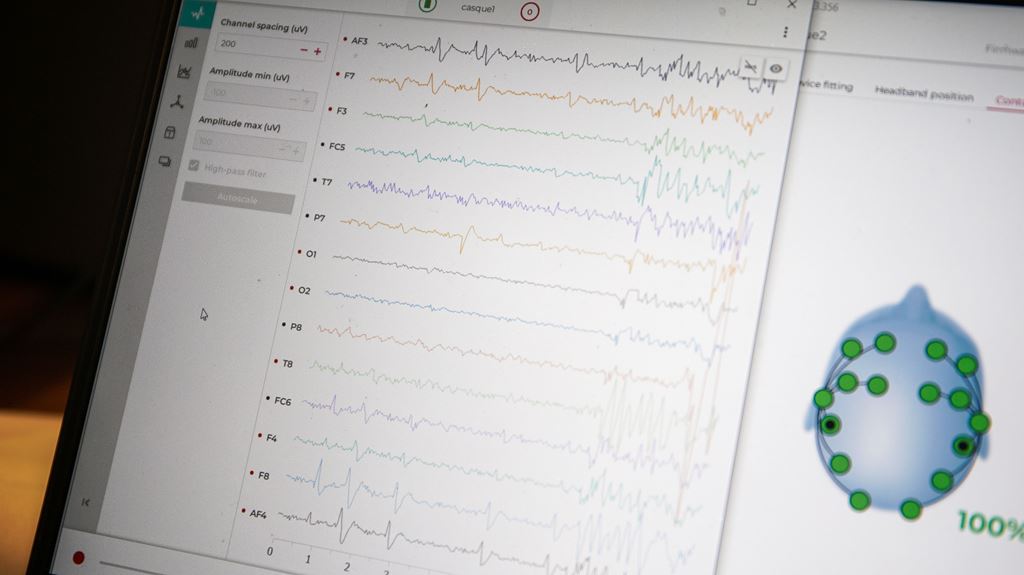 This experiment was conducted using Emotiv 14-channel Electroencephalography (EEG) systems recently developed and never previously used in research at LPL. This wireless headset allows, unlike the EEG Biosemi or EGI devices of the platform, the capture of electro-physiological information in field research situations or for educational purposes.